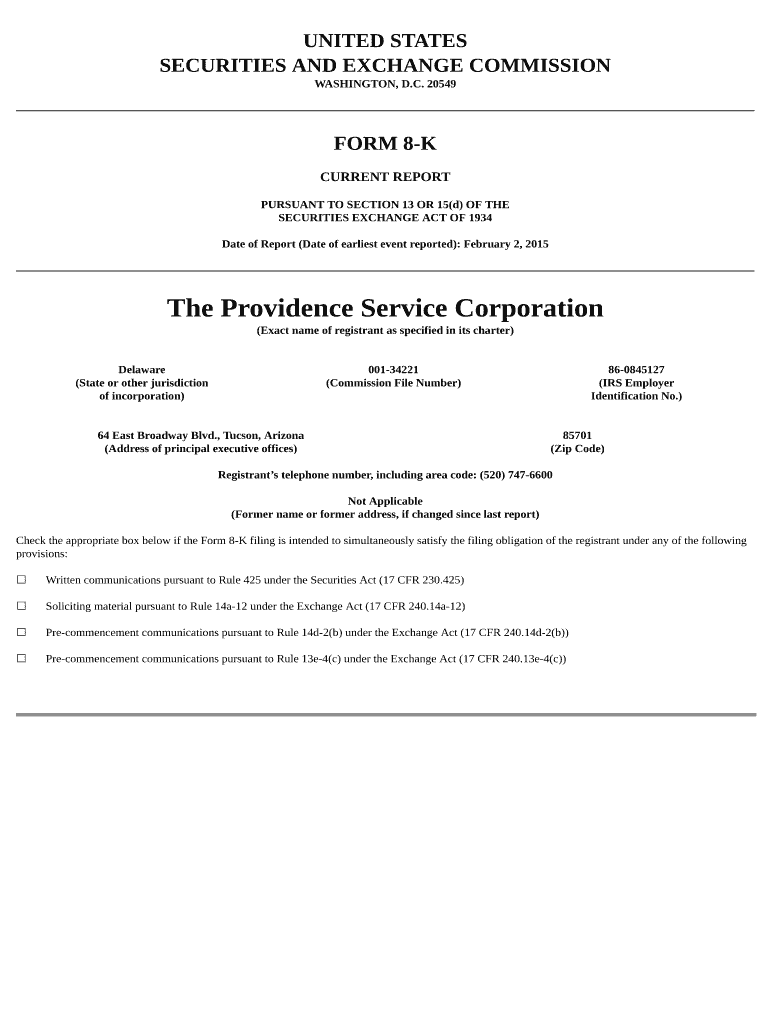 Get the free Date of Report (Date of earliest event reported): February 2, 2015