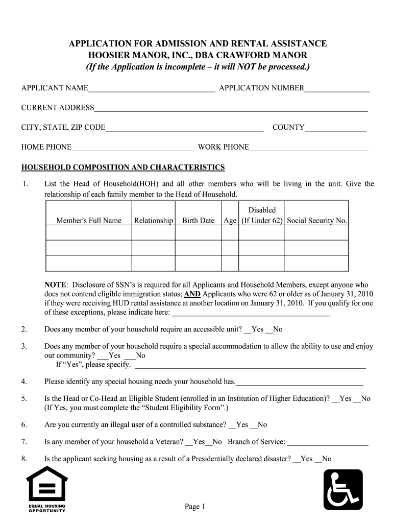 Get the free application for admission and rental assistance - Crawford ...