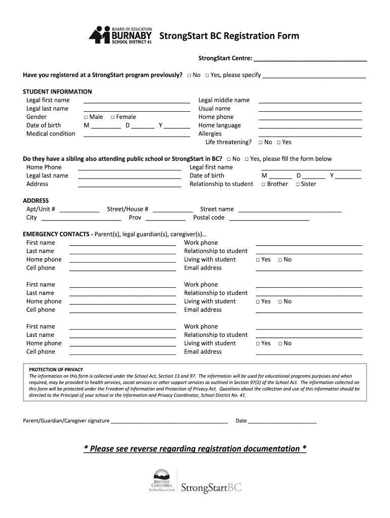 How to fill out strongstart burnaby form