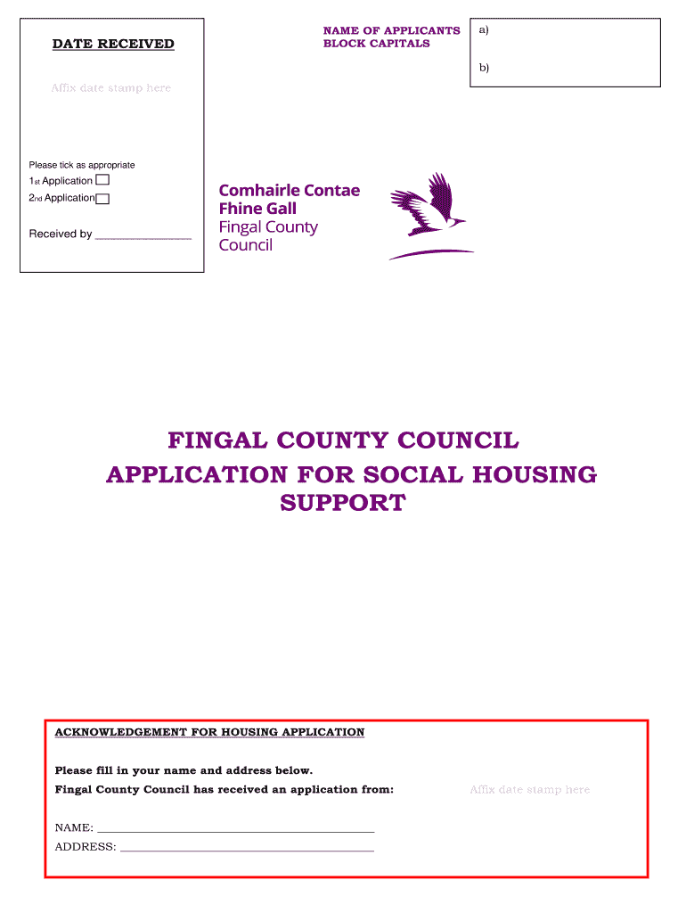 A P P L I C A T I O N DATE RECEIVEDNAME OF APPLICANTS BLOCK Capitals)b) Affix date stamp release tick as appropriate1st Application 2nd ApplicationReceived by FINAL COUNTY COUNCIL APPLICATION FOR