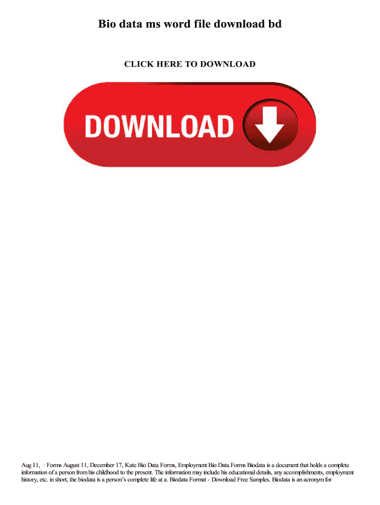 Bio data MS Word file download BD CLICK HERE TO DOWNLOAD Aug 11, Forms August 11, December 17, Kate Bio Data Forms, Employment Bio Data Forms Biodata is a document that holds complete information