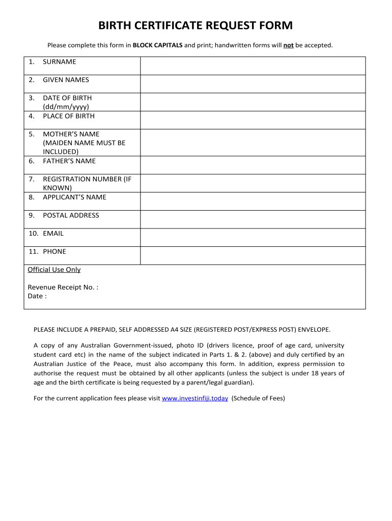 How to fill out australia birth certificate request