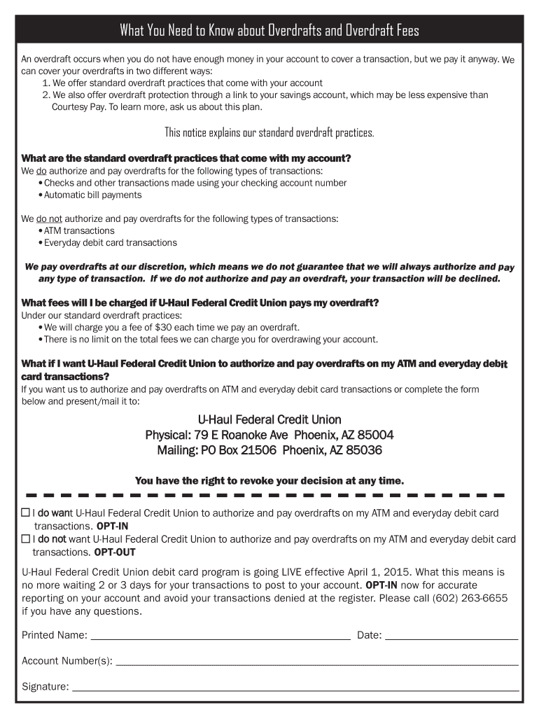 Who Needs the U-Haul Federal Credit Union Overdraft Notice?