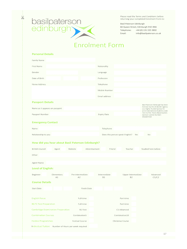 Get the free Enrolment Form - Basil Paterson Edinburgh
