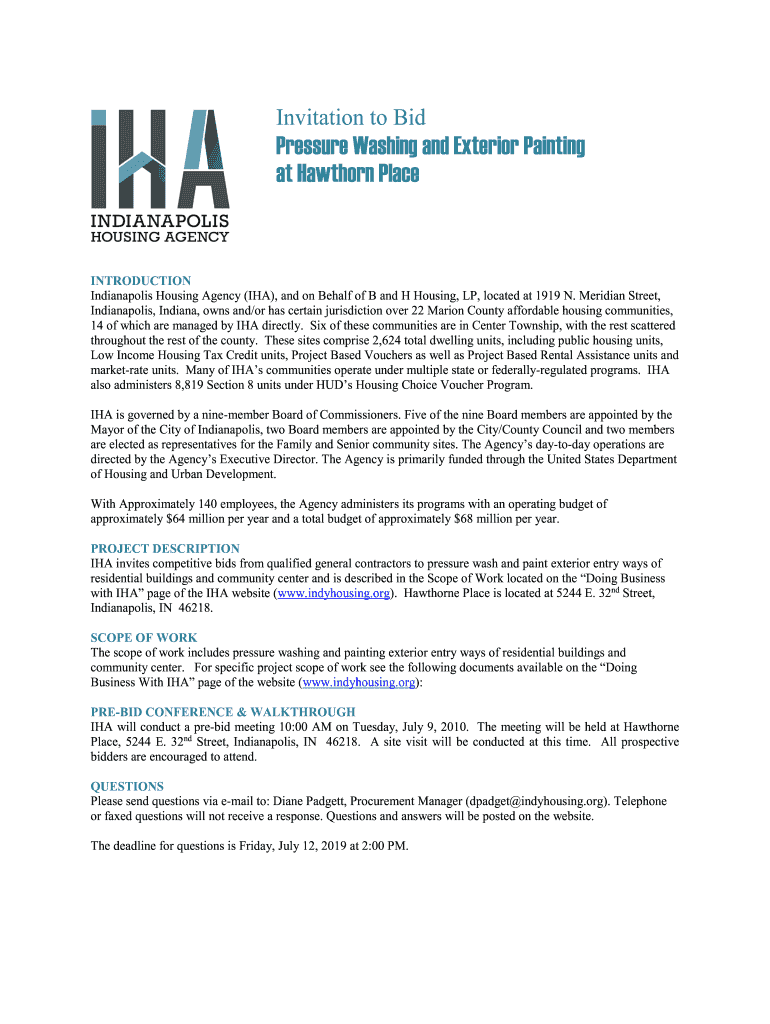 Get the free Invitation for Bid Interior/Exterior Painting Services