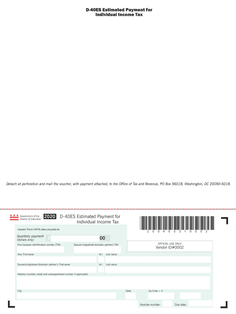 Individual Income Detach at perforation and mail the voucher, with payment attached, to the Office of Tax and Revenue, PO Box 96018, Washington, DC 200906018. Print