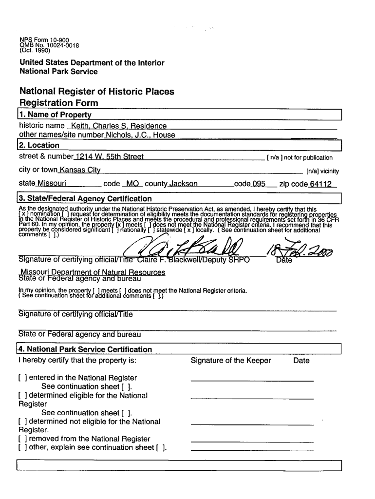 NPS Form 109000 MB No. 100240018 (Oct. 1990)United States Department of the Interior National Park ServiceNational Register of Historic Places Registration Form!1. Name of Property historic name