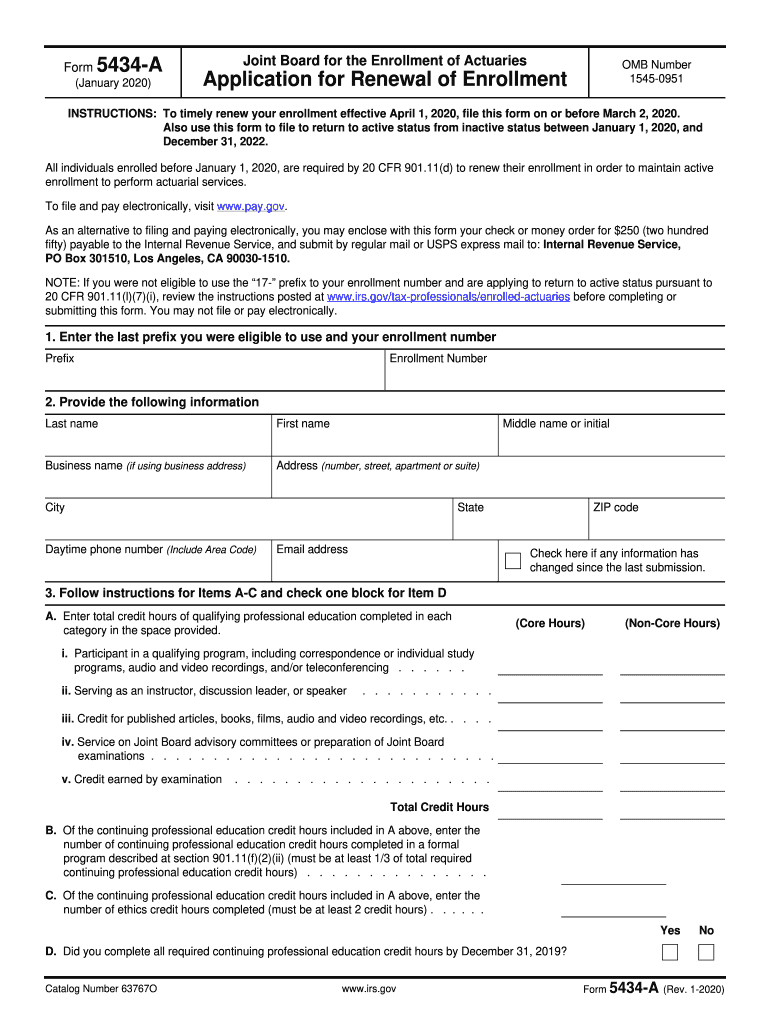 Form5434A(January 2020)Joint Board for the Enrollment of Actuaries OMB Number