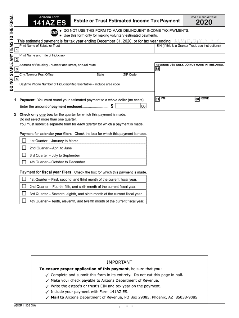 DO NOT STAPLE ANY ITEMS TO THE FORM. Arizona Form141AZ ES