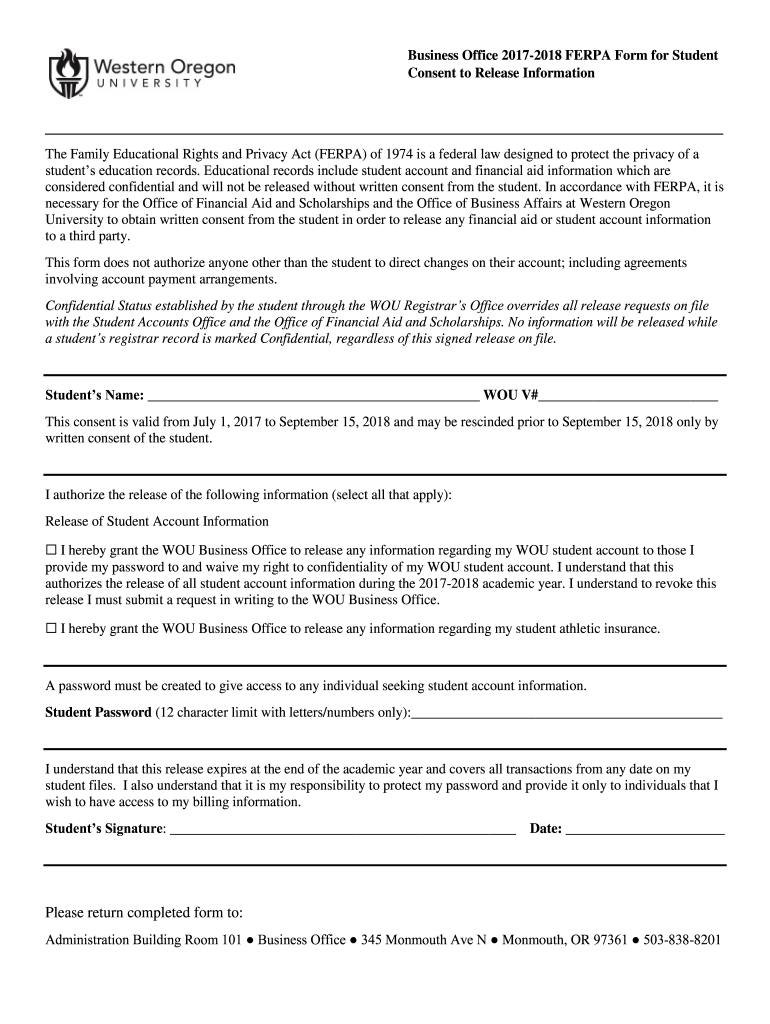 Get the free Business Office 2017-2018 FERPA Form for Student