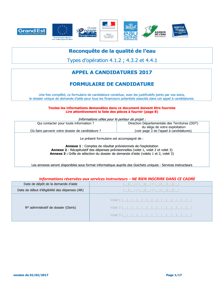 Reconquer DE la quality DE lead Types operation 4.1.2 ; 4.3.2 ET 4.4.1 APPEAL A CANDIDATURES 2017 FORMULA IRE DE CANDIDATURE One foil comply, CE formula ire DE candidature constitute, Alec LES justification