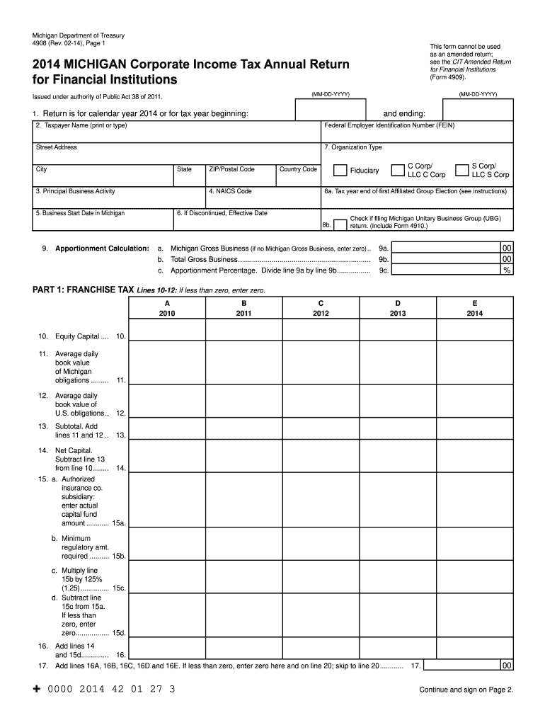 Get the free 4908. Corporate Income Tax Annual Return for Financial Institutions