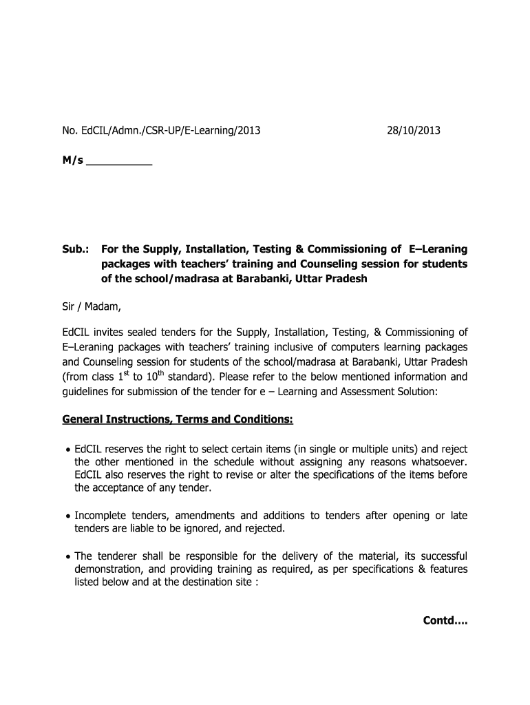 Get the free No EdCILAdmnCSR-UPE-Learning2013 28102013 Ms bb