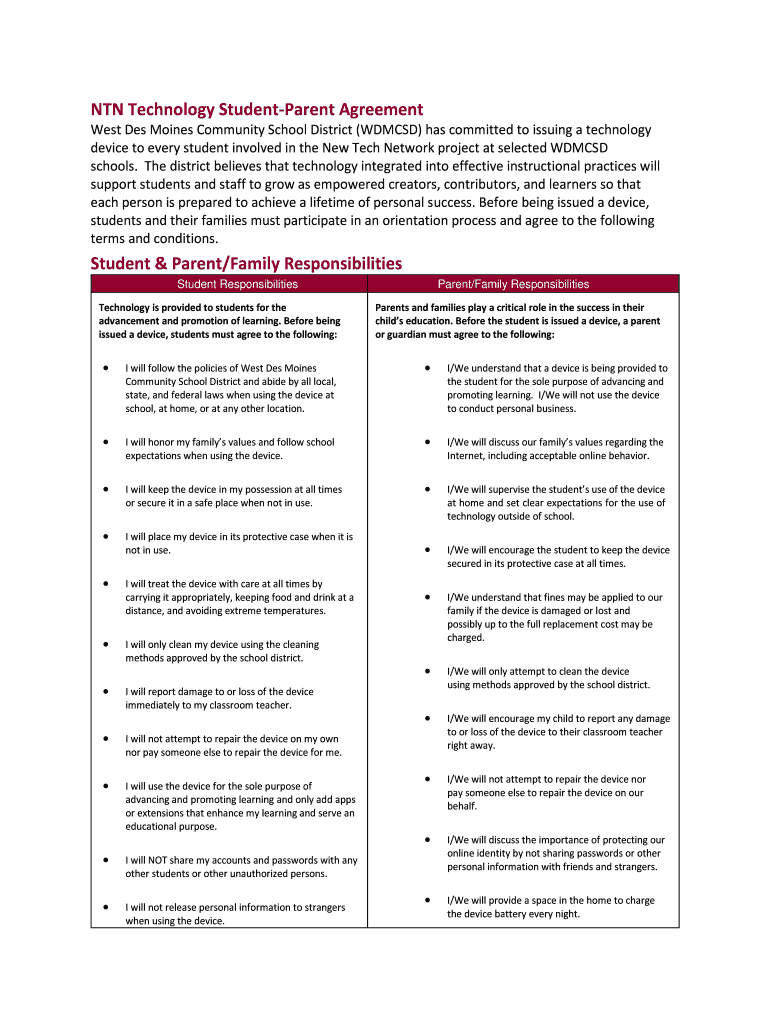 Get the free NTN Technology Student-Parent Agreement Student & Parent ...