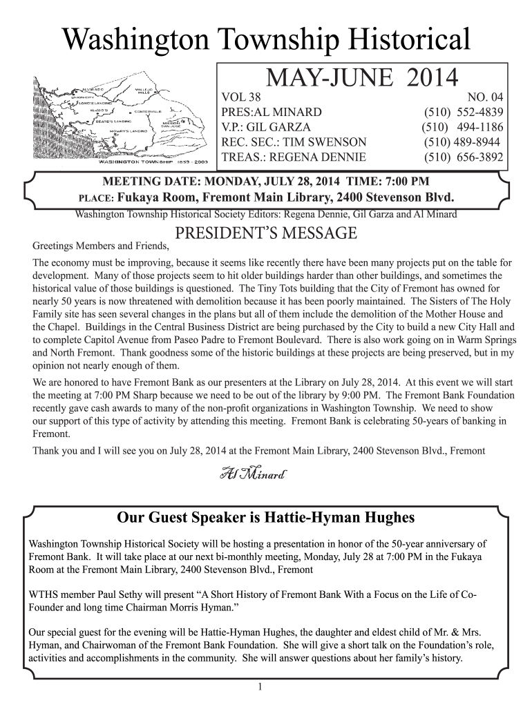 JUNE 2014VOL 38PRES:AL MINARET. P.: GIL WARFARE. SEC.: TIM SWENSONTREAS.: REGENT DENIED. 04
