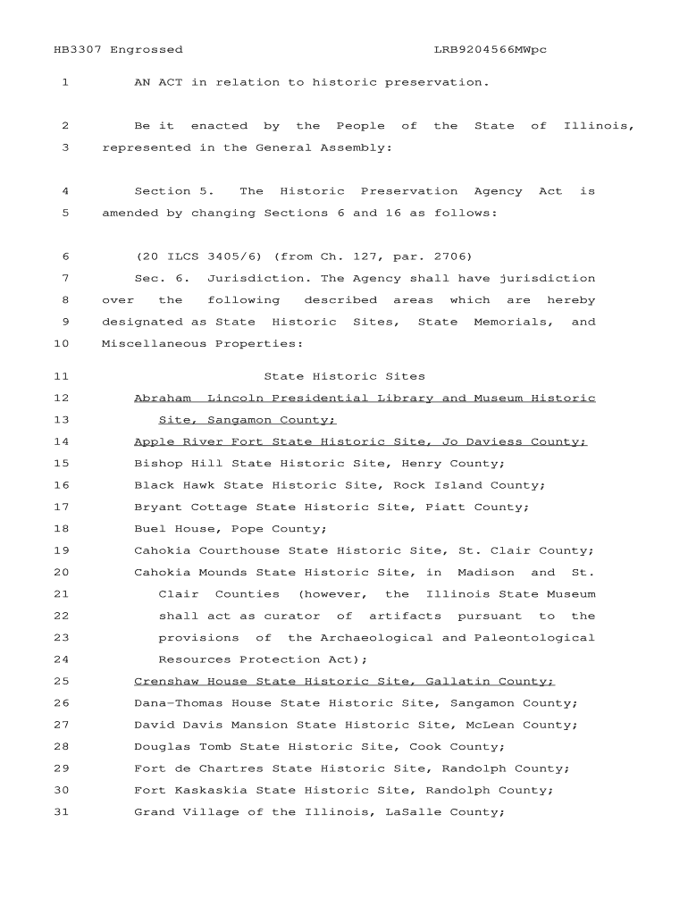 HB3307 EngrossedLRB9204566MWpc1AN ACT in relation to historic preservation.2Be it34