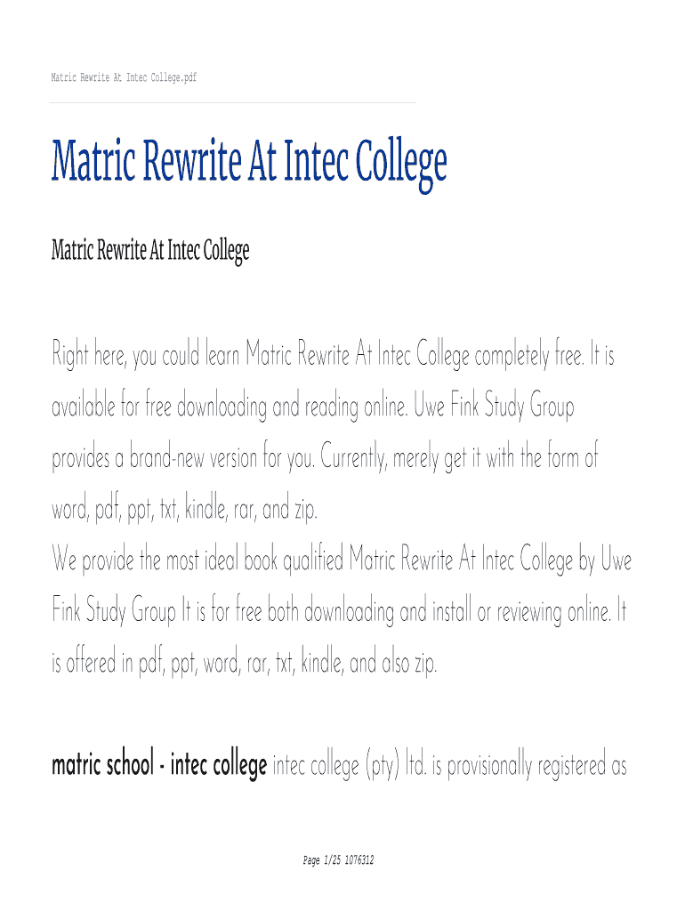 Intec College Matric Rewrite is not the form you're looking for?Search for another form here.