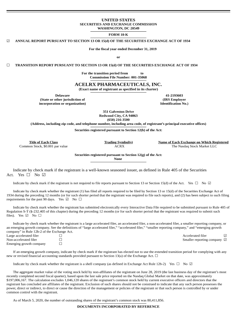 Get the free acelrx pharmaceuticals, inc. - Annual Reports