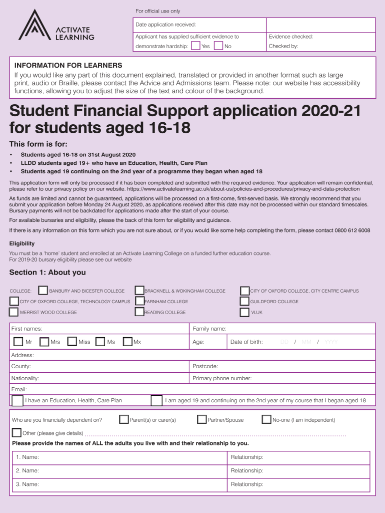 Applicant has supplied sufficient evidence checked:demonstrate hardship:Checked by:YesNoINFORMATION FOR LEARNERS