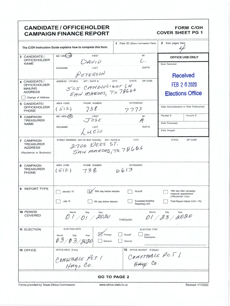 1Fi lurid (Ethics Commission Filers)2Total pages C/OH Instruction Guide explains how to complete this form .3 CANDIDATE /