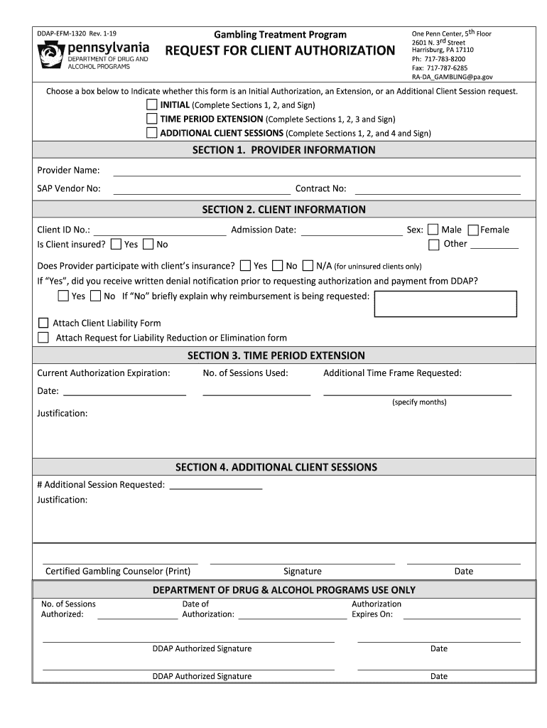 DDAPEFM1320 Rev. 119Gambling Treatment ProgramREQUEST FOR CLIENT Authorization Penn Center, 5th Floor