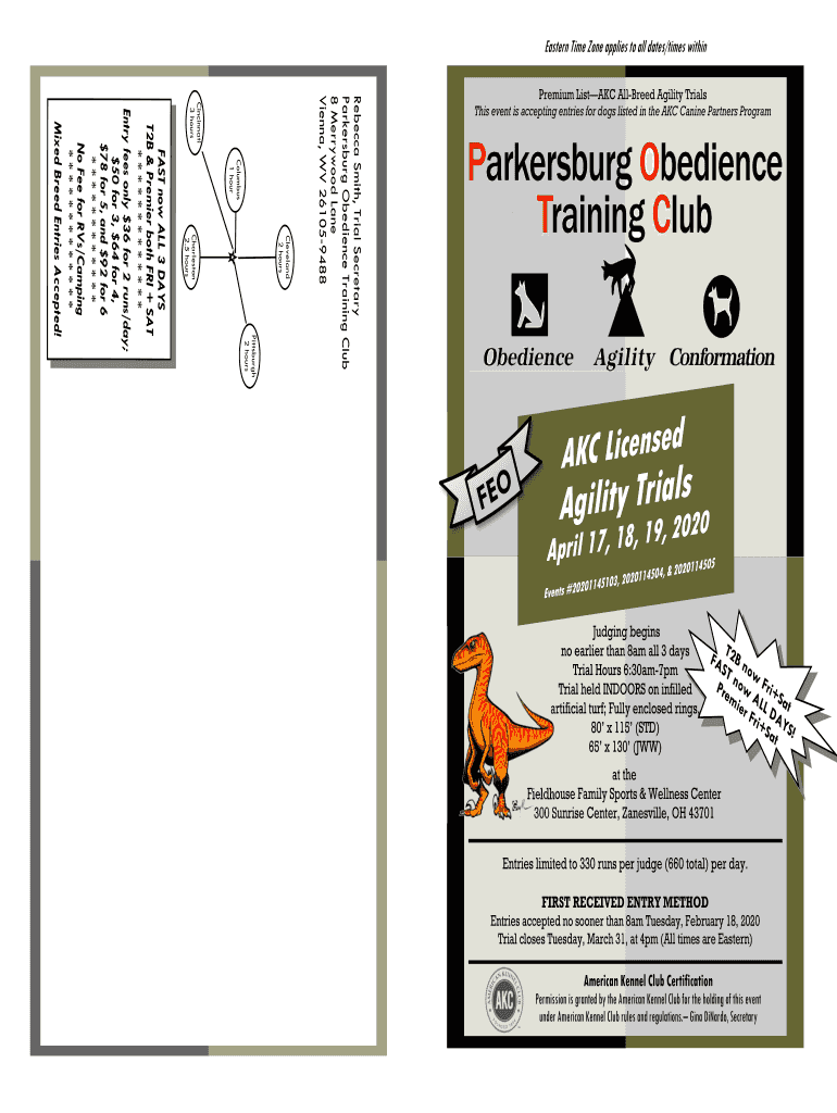 Eastern Time Zone applies to all dates/times within Cincinnati 3 hoursPremium List AKC Allured Agility Trials This event is accepting entries for dogs listed in the AKC Canine Partners Program Columbus
