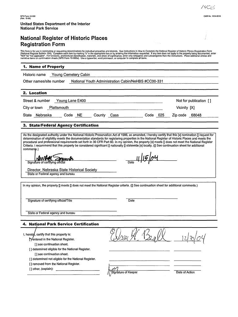 NPS Form 10900 (Rev. 1090)OMB No. 10240018United States Department of the Interior National Park ServiceNational Register of Historic Places Registration Form This form is for use in nominating or