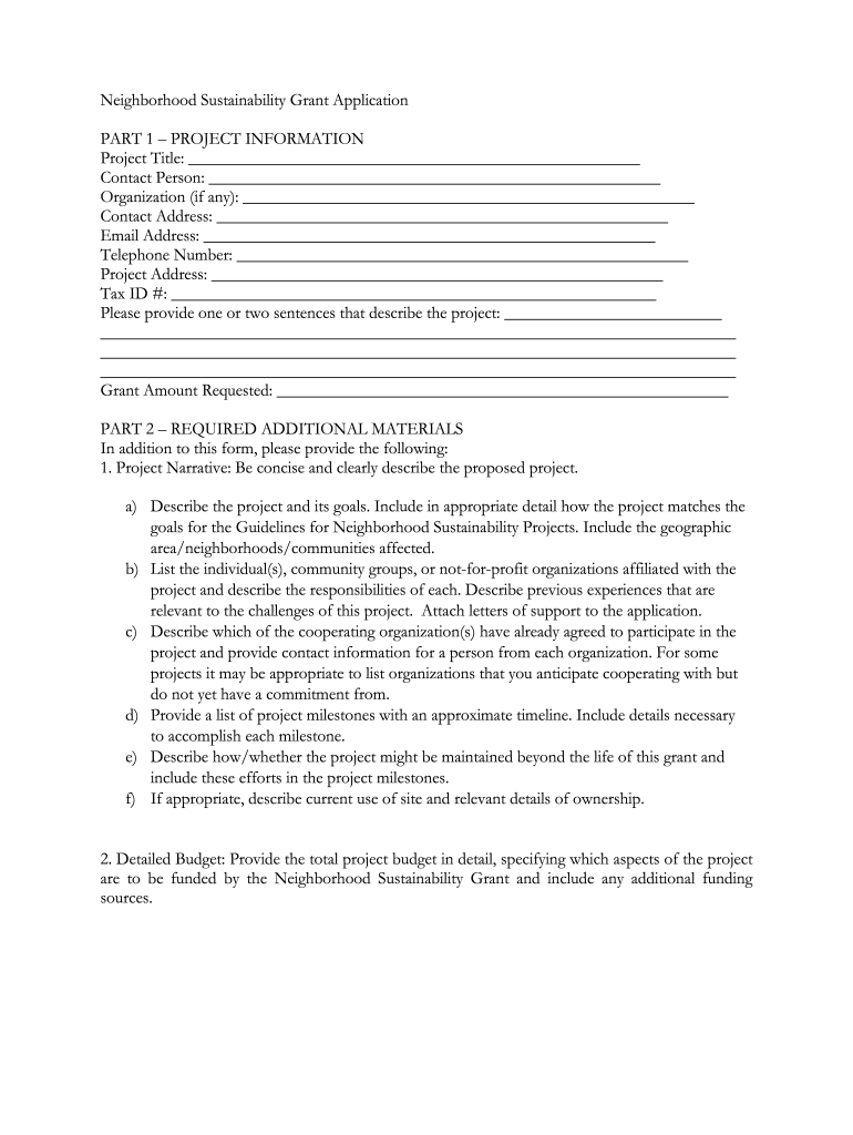 Get the free Neighborhood Sustainability Grants The Neighborhood ...