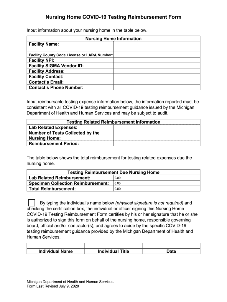 Get the free Nursing Home COVID-19 Testing Reimbursement Form