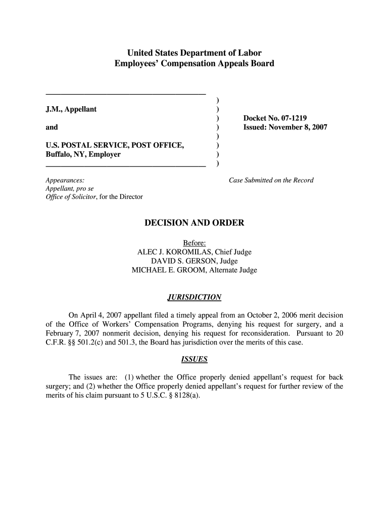 Get the free 07-1219: J.M. and U.S. POSTAL SERVICE, POST OFFIC...