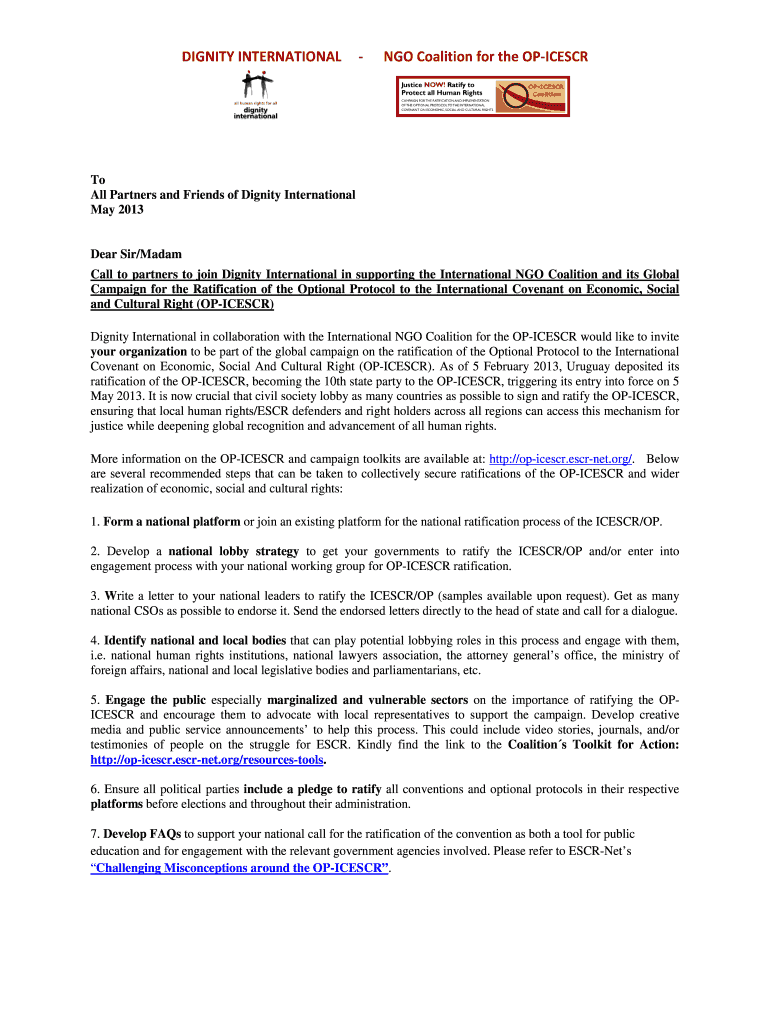 Get the free DIGNITY INTERNATIONAL - NGO Coalition for the OP-ICESCR