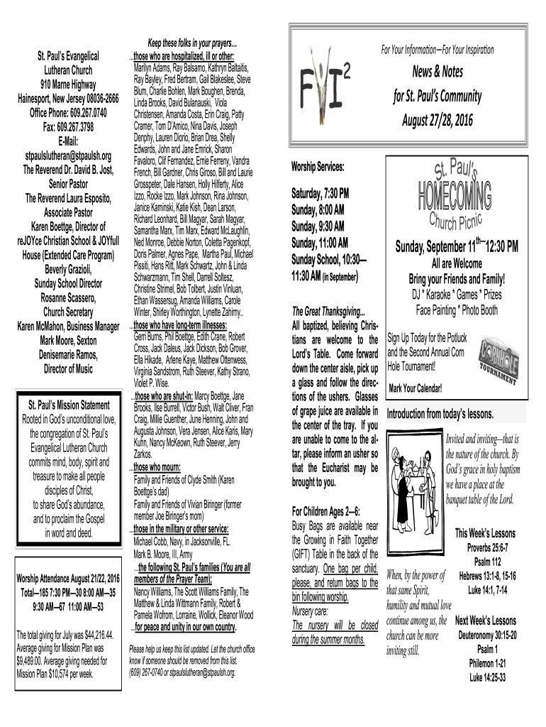 Get the free News & Notes for St. Paul's Community August 27/28, 2016
