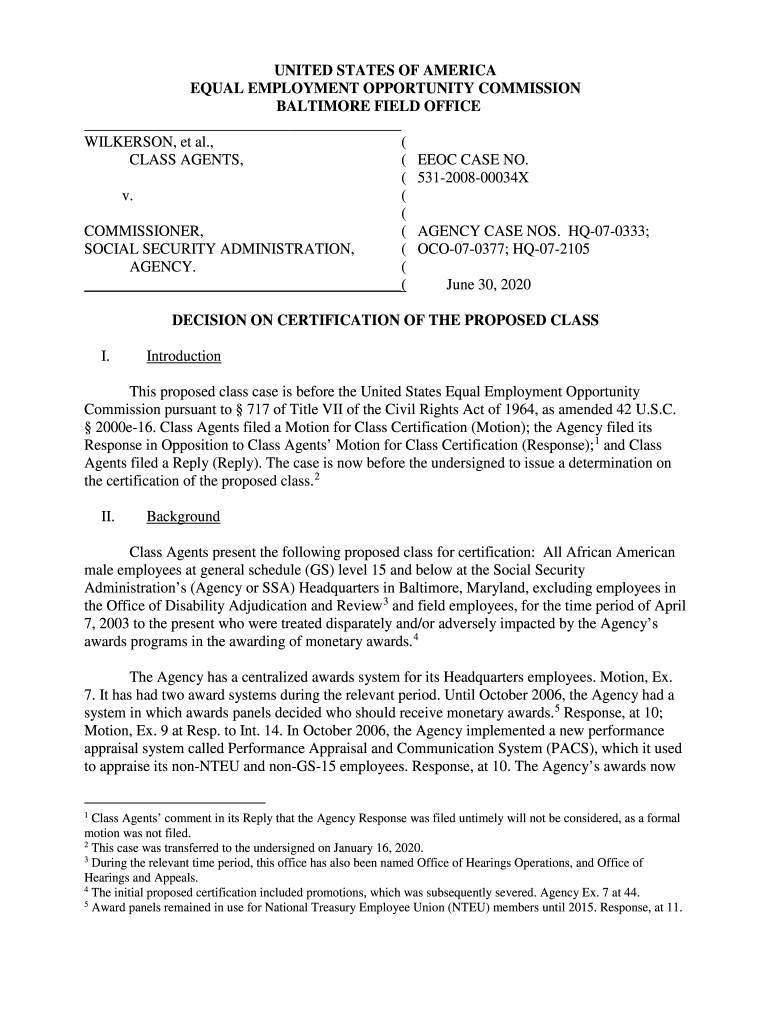 UNITED STATES OF AMERICA EQUAL EMPLOYMENT OPPORTUNITY COMMISSION BALTIMORE FIELD OFFICE WILKERSON, et al., (CLASS AGENTS, (EEOC CASE NO. (531200800034X v. ((COMMISSIONER, (AGENCY CASE NOS. HQ070333;