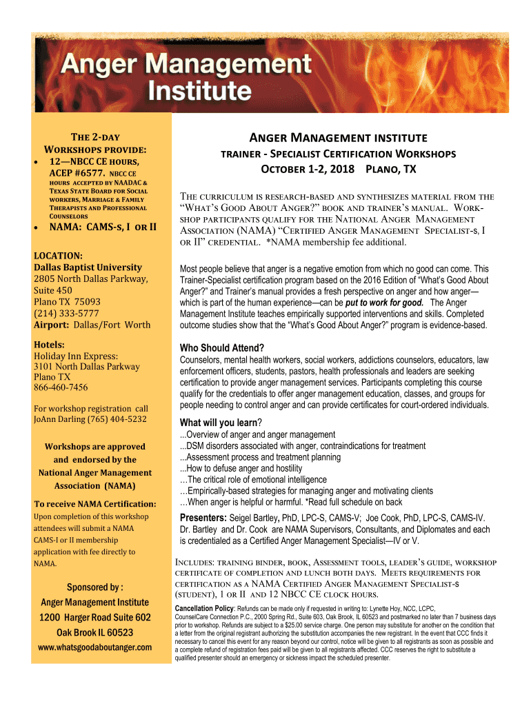 The 2day Workshops provide: 12NBCC CE hours, ACE #6577. NBC CE hours accepted by NAFDAC & Texas State Board for Social workers, Marriage & Family Therapists and Professional CounselorsNAMA: Camps,