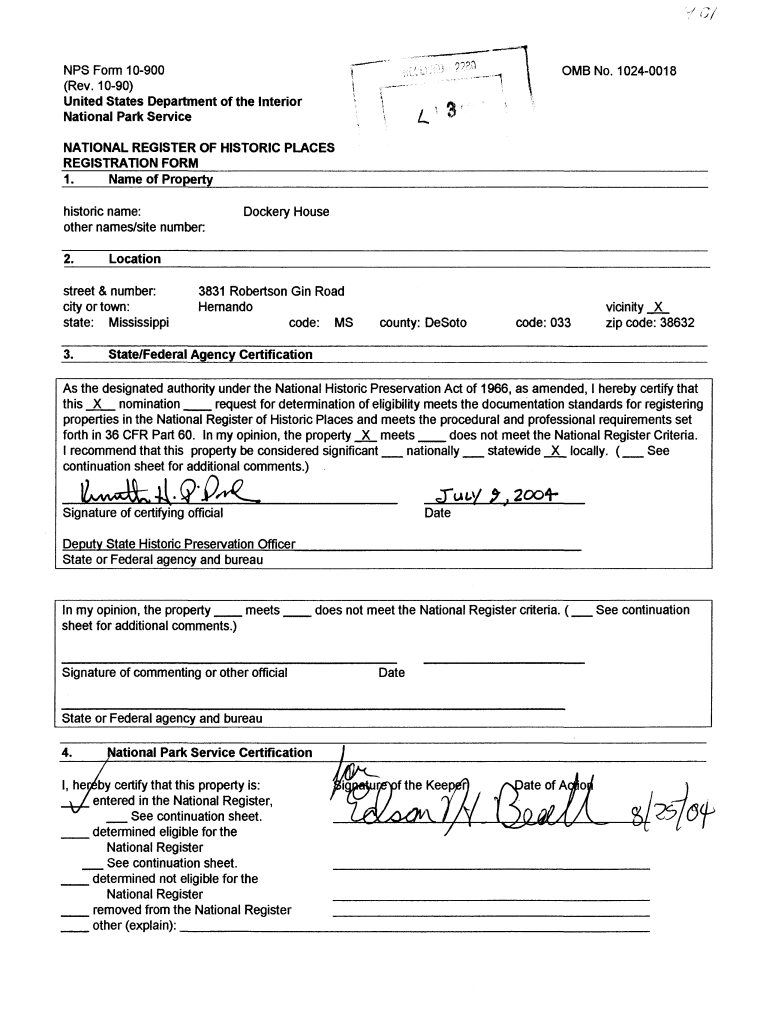 NPS Form 10900 (Rev. 1090)OMB No. 10240018United States Department of the Interior National Park Service NATIONAL REGISTER OF HISTORIC PLACES REGISTRATION FORM 1. Name of Property historic name: other