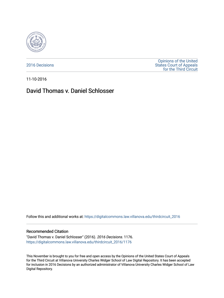 2016 DecisionsOpinions of the United States Court of Appeals for the Third Circuit11102016David Thomas v. Daniel SchlosserFollow this and additional works at: https://digitalcommons.law.villanova.edu/thirdcircuit