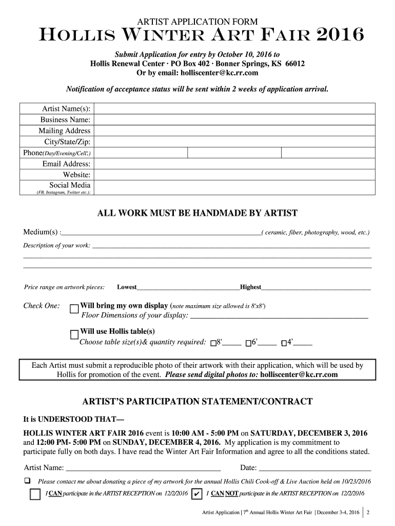 Get the free Seventh Annual HOLLIS WINTER ART FAIR December 3-4, 2016