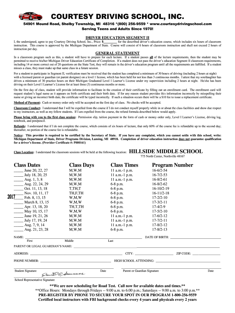 54901 Mound Road, Shelby Township, MI 48316 *(800) 2569559 * www.courtesydrivingschool.com
