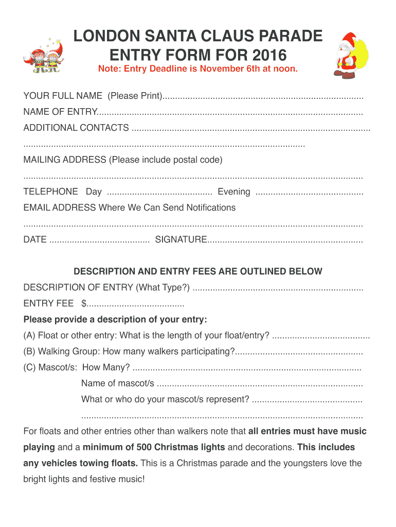 Note: Entry Deadline is November 6th at noon. YOUR FULL NAME (Please Print)................................................................................