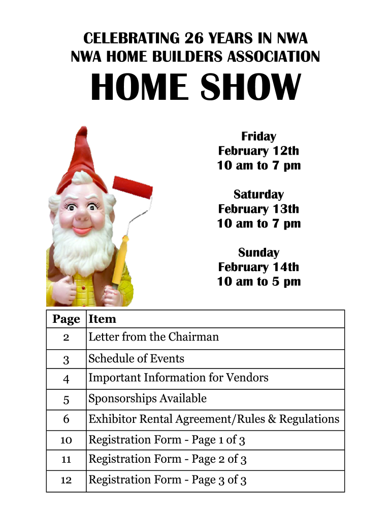 CELEBRATING 26 YEARS IN NSA HOME BUILDERS ASSOCIATIONHOME SHOW Friday, February 12th 10 am to 7 pm Saturday, February 13th 10 am to 7 pm Sunday, February 14th 10 am to 5 pm Page Item 2Letter from