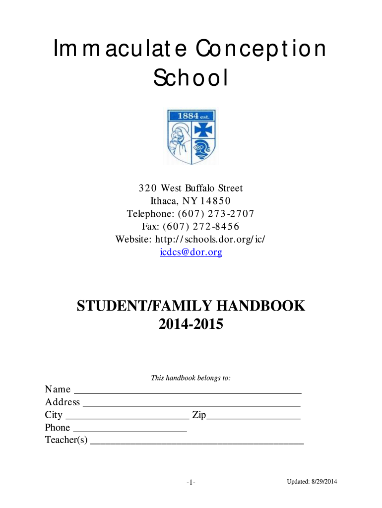 I'm m ACU lat e Co n CEP t ion Sch o l3 2 0 West Buffalo Street Ithaca, NY 1 4 8 5 0 Telephone: (6 0 7) 2 7 3 2 7 0 7 Fax: (6 0 7) 2 7 2 8 4 5 6 Website: HTTP:/ / schools.dor.org/ IC/ CDs dor.orgSTUDENT/FAMILY