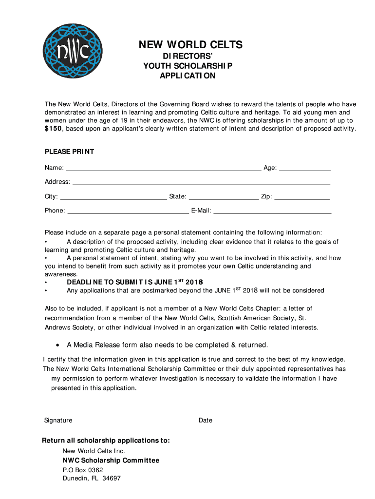 Get the free New World Celts - Dunedin Chapter Scholarship Assistance ...