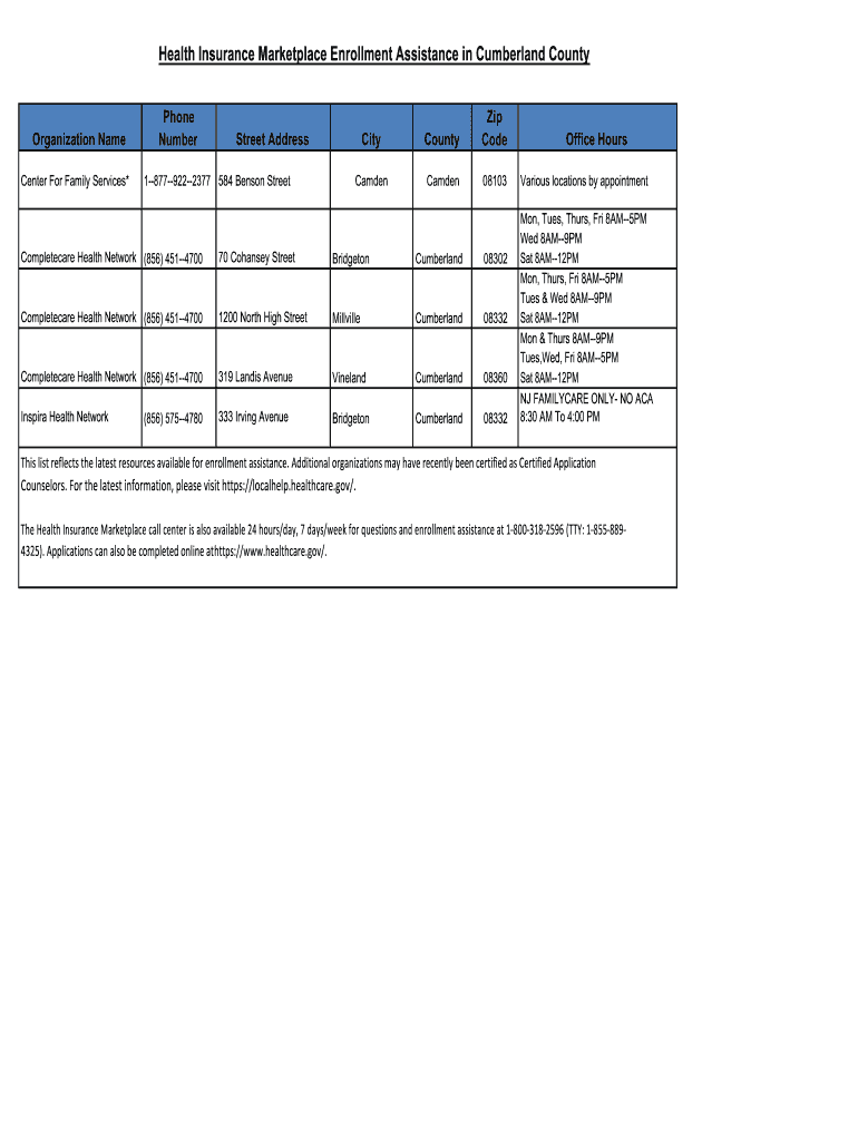 Health Insurance Marketplace Enrollment Assistance in Cumberland CountyPhone