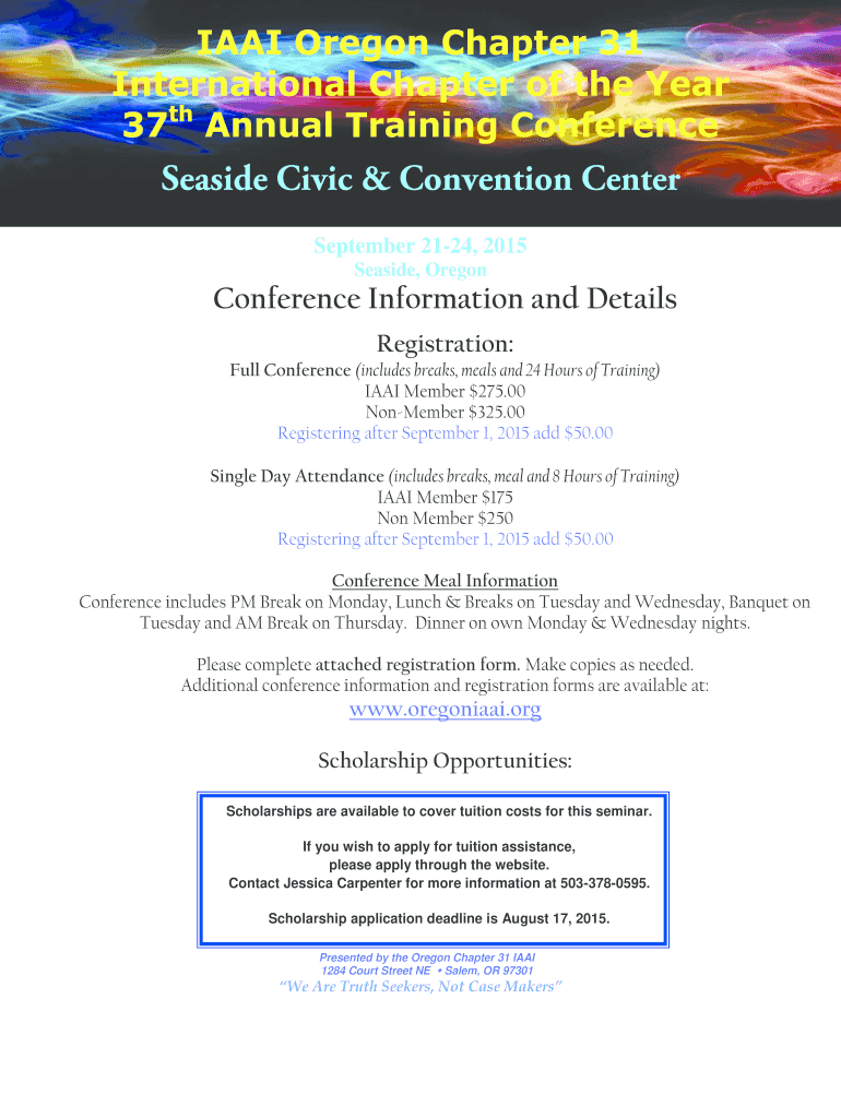 Get the free IAAI Oregon Chapter 31 International Chapter of ... - Wsimg.com