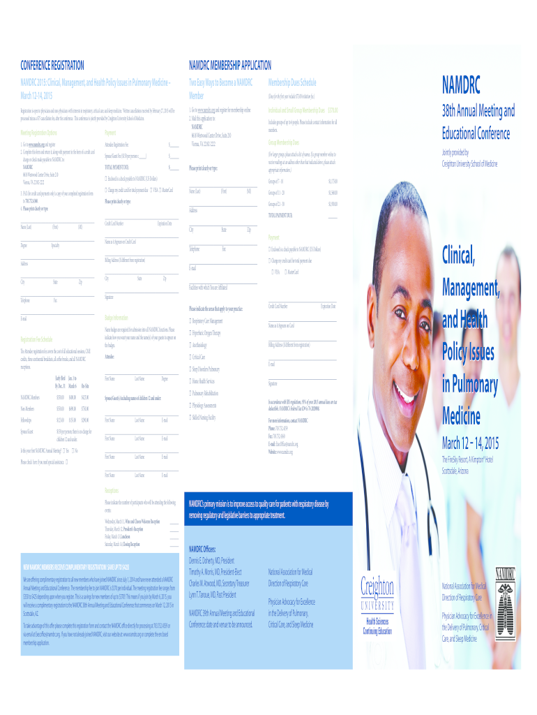 CONFERENCE REGISTRATIONNAMDRC MEMBERSHIP APPLICATIONNAMDRC 2015: Clinical, Management, and Health Policy Issues in Pulmonary Medicine March 1214, 2015Two Easy Ways to Become a NAM DRC MemberMembership
