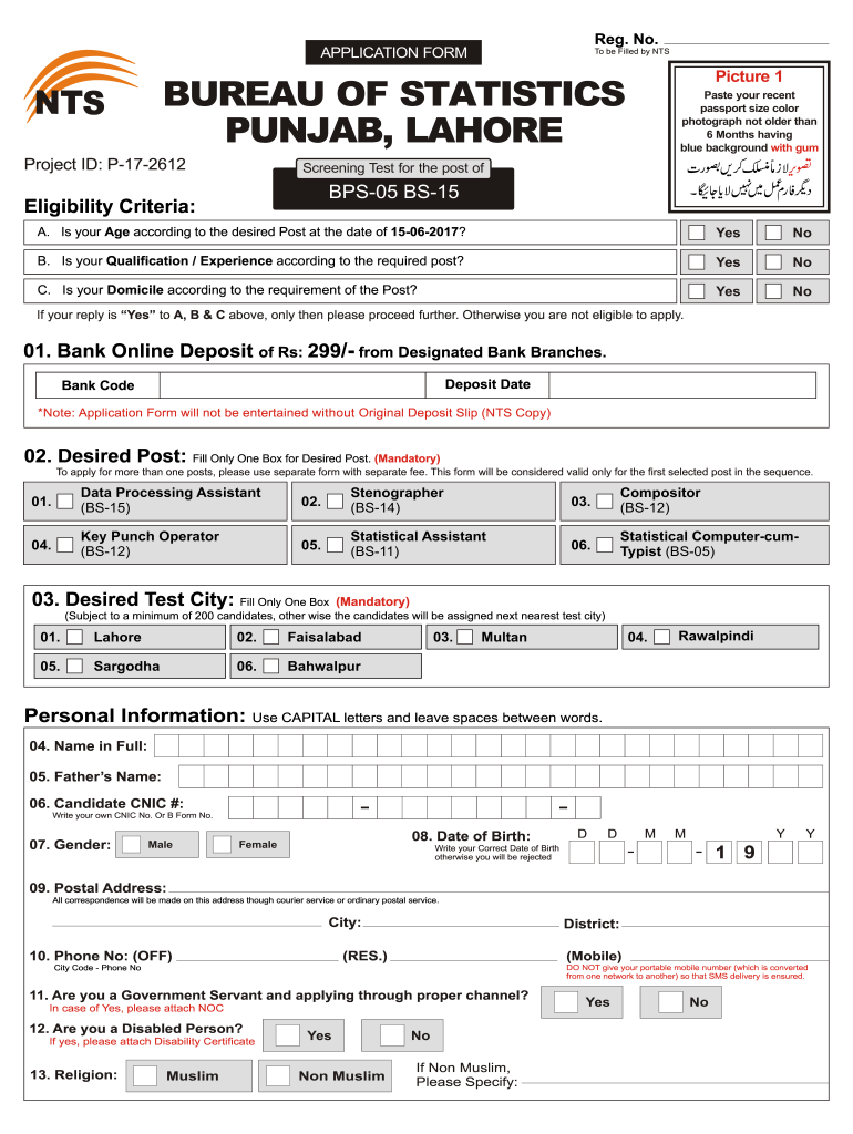 Reg. No.APPLICATION Form be Filled by Picture 1BUREAU OF STATISTICS