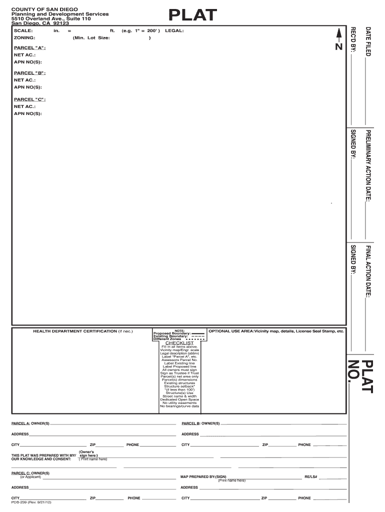 In.ZONING:ft.(e.g. 1 200)(Min. Lot Size:LEGAL:)PARCEL “A “: NET AC.:APN NO(S):DATE TIMESCALE:PLAT REC CD BY:COUNTY OF SAN DIEGO Planning and Development Services 5510 Overland Ave., Suite 110