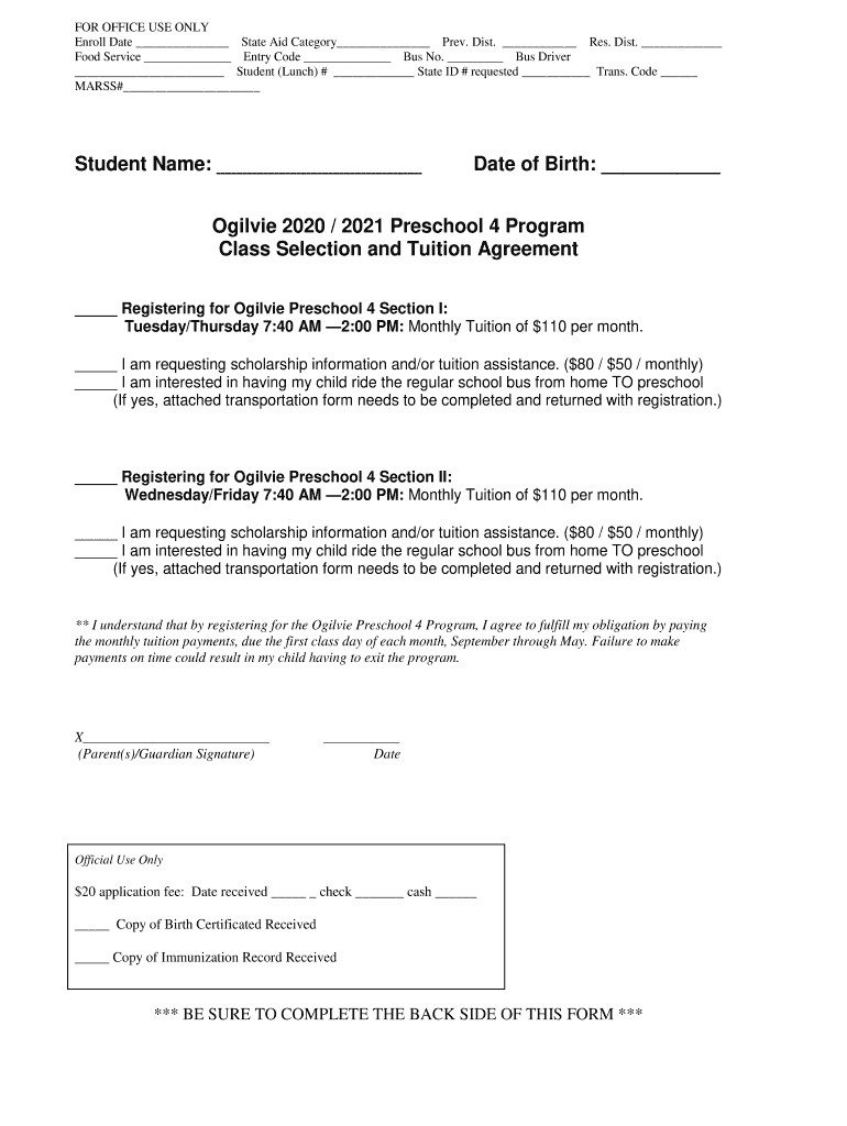 FOR OFFICE USE ONLY Enroll Date State Aid Category Prey. Dist. Res. Dist. Food Service Entry Code Bus No. Bus Driver Student (Lunch) # State ID # requested Trans. Code MASS# Student Name: Date of