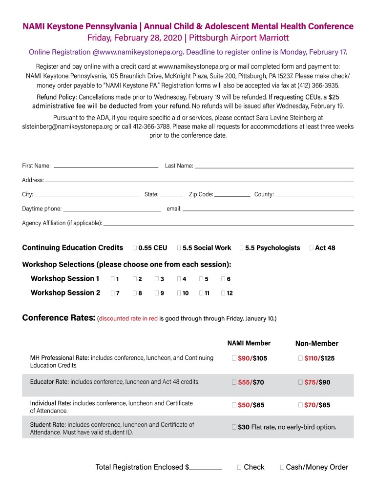 NAME Keystone Pennsylvania Annual Child & Adolescent Mental Health Conference Friday, February 28, 2020, Pittsburgh Airport Marriott Online Registration www.namikeystonepa.org. Deadline to register