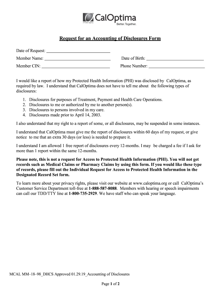 Member Name:Date of Birth:Member IN:Phone Number:I would like a report of how my Protected Health Information (PHI) was disclosed by